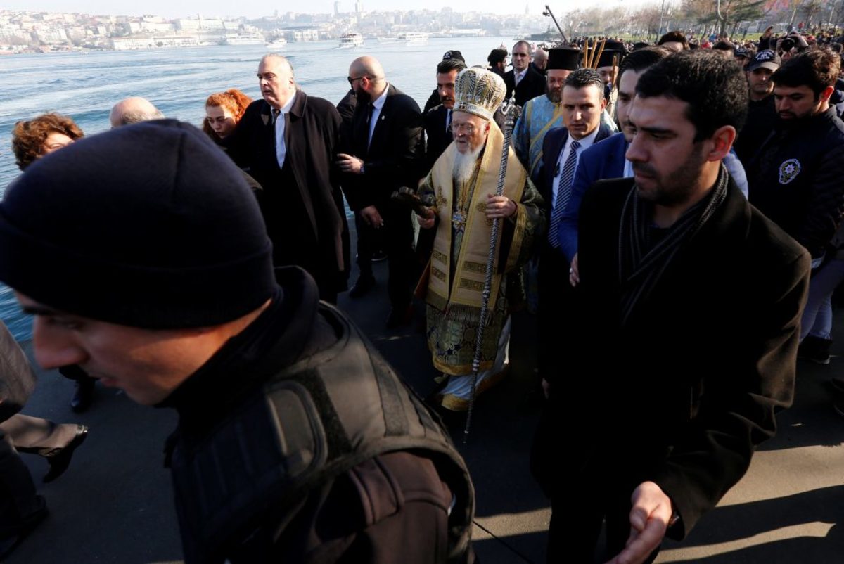 Ρίγη συγκίνησης στην Κωνσταντινούπολη κατά την τελετή αγιασμού των υδάτων από τον Οικουμενικό Πατριάρχη Βαρθολομαίο. Τα Θεοφάνεια στην Πόλη γιορτάστηκαν υπό δρακόντεια μέτρα ασφαλείας και με Βυζαντινή μεγαλοπρέπεια.