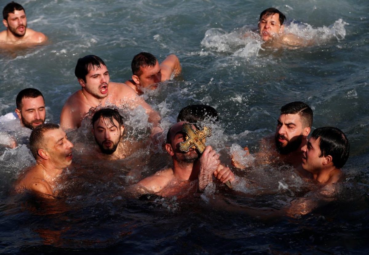 Οι πιστοί βρίσκονταν από νωρίς στα καραβάκια και περίμεναν τον Οικουμενικό Πατριάρχη να ρίξει τον Σταυρό στον Κεράτιο Κόλπο. Τυχερός για δεύτερη συνεχόμενη χρονιά ήταν ο Νίκος Σολής, από το Αγρίνιο. Και πέρυσι τα Θεοφάνεια ήταν εκείνος που έπιασε πρώτος το Σταυρό.
